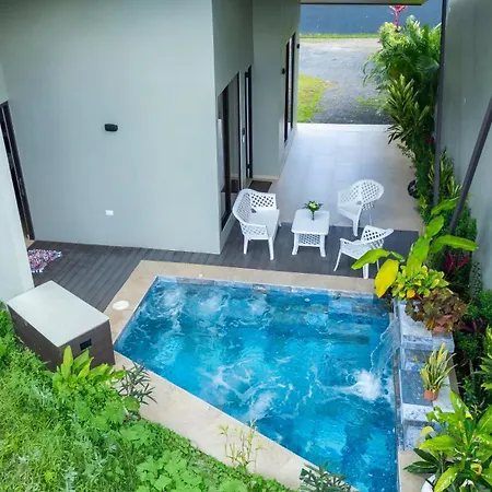 Located nearly a 10-minute drive from the El Salto, the 1-bedroom Villa Aurora With Jacuzzi In La Fortuna offers a terrace with views of the garden. Offering a private swimming pool, the La Fortuna villa invites guests to visit Kalambu Hot Springs, located 4.7 km away.